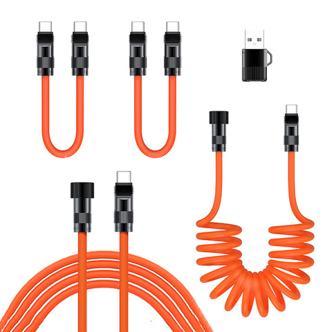 65W iki sürükle iki PD hızlı şarj bahar teleskopik 4 1 veri kablosu 1.5 metre uzunluk tpye-c IP telefonları şarj etmek için uygun